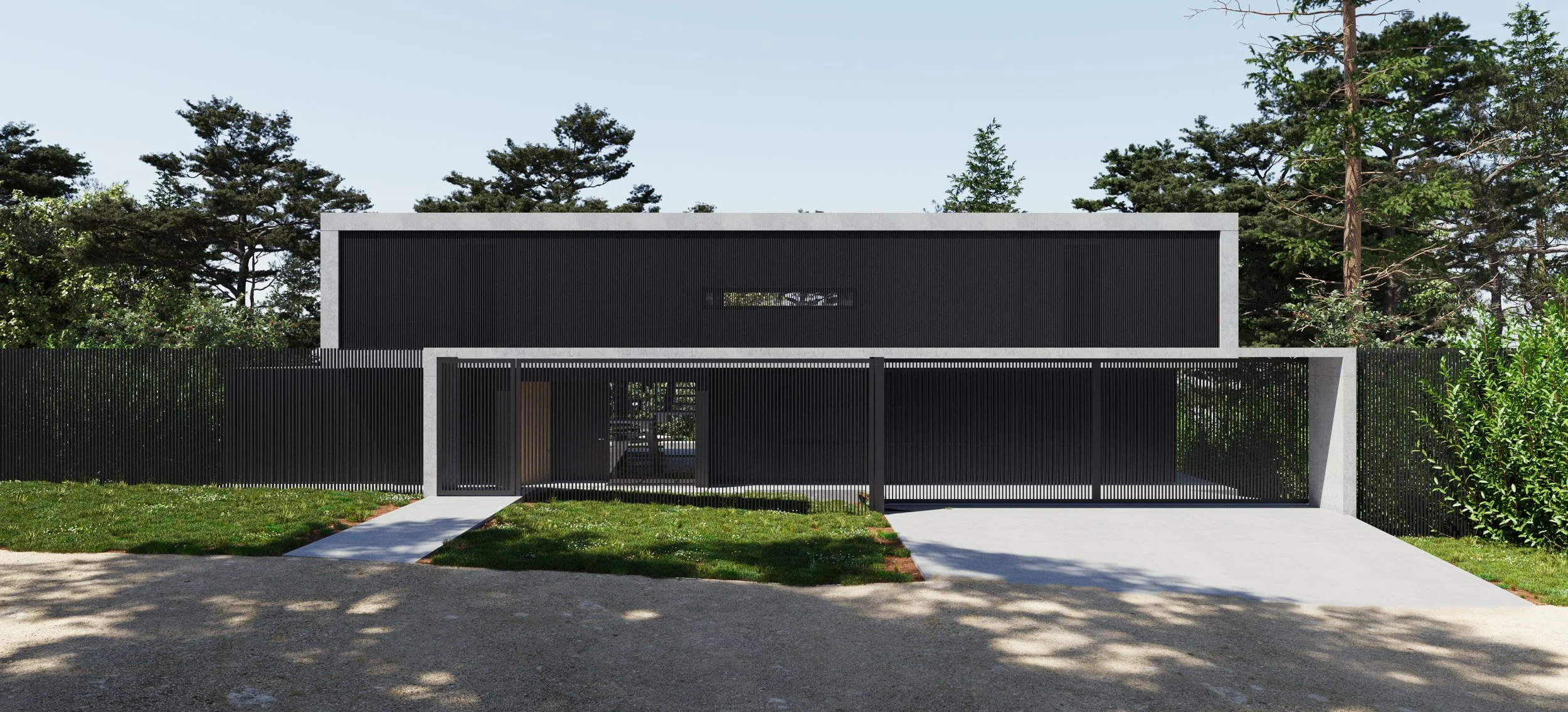 Hacia la calle la casa, se muestra contenida y silenciosa: planos ciegos y filtros densos conforman un frente sobrio, casi hermético, que protege la intimidad y marca distancia con lo público.